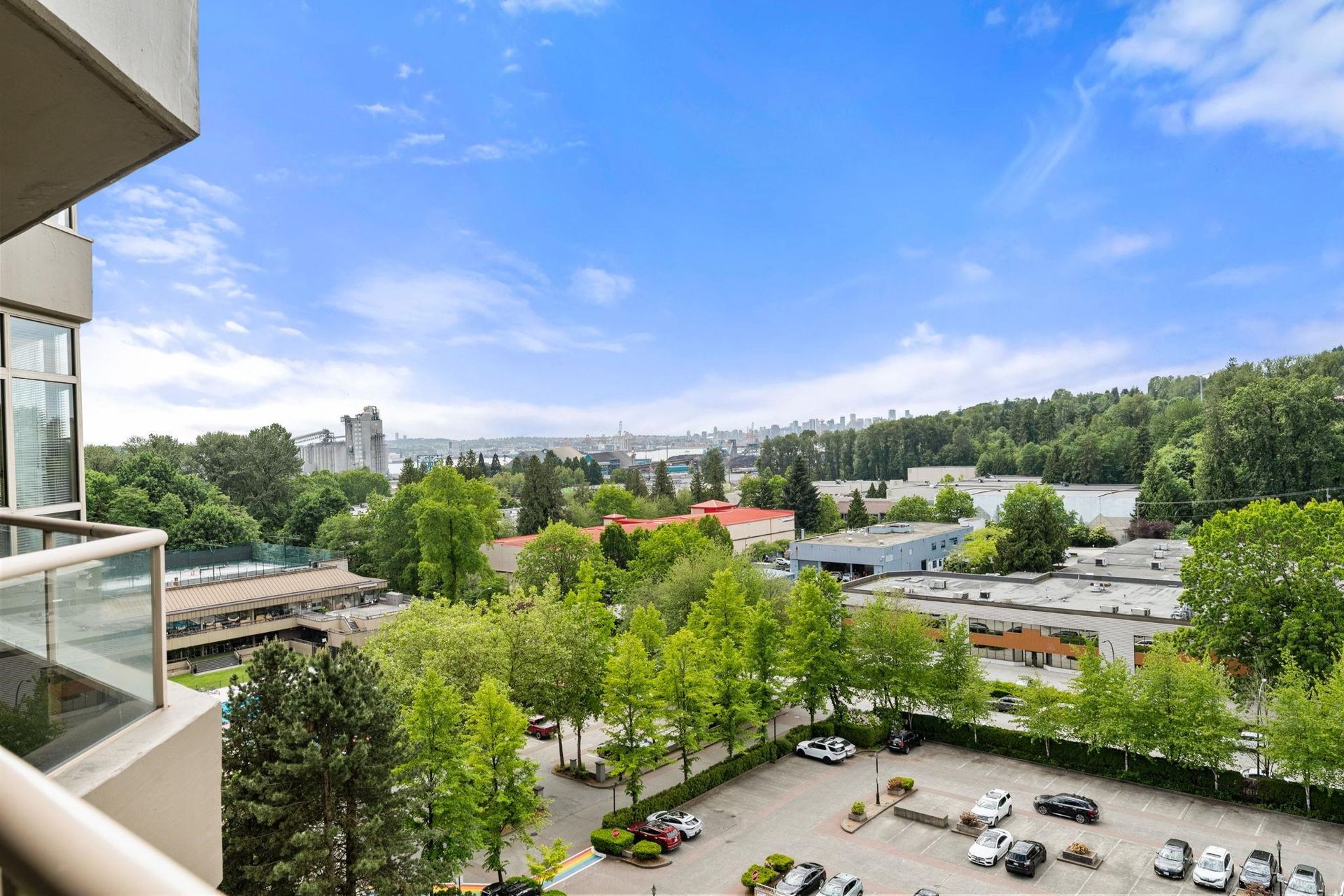 CARLTON AT THE CLUB – Bright, spacious, and West-facing, this concrete condo offers 2 bedrooms, 2 full bathrooms, and stunning city, water, and mountain views. The open-concept layout features a large kitchen flowing into the dining and living areas, with updated flooring and fresh paint throughout. The primary bedroom boasts an ensuite and generous closet space, while the second bedroom is perfect for guests or a home office. A perfect deck to enjoy the sunsets! Enjoy resort-style amenities: indoor pool, hot tub, sauna, gym, theatre, billiards, card room, and guest suite. Ideally located next to Bridgman Park and just steps to Park & Tilford shops and services. 1 parking and 1 storage. Sorry, no pets. This home wont last long come see it today!