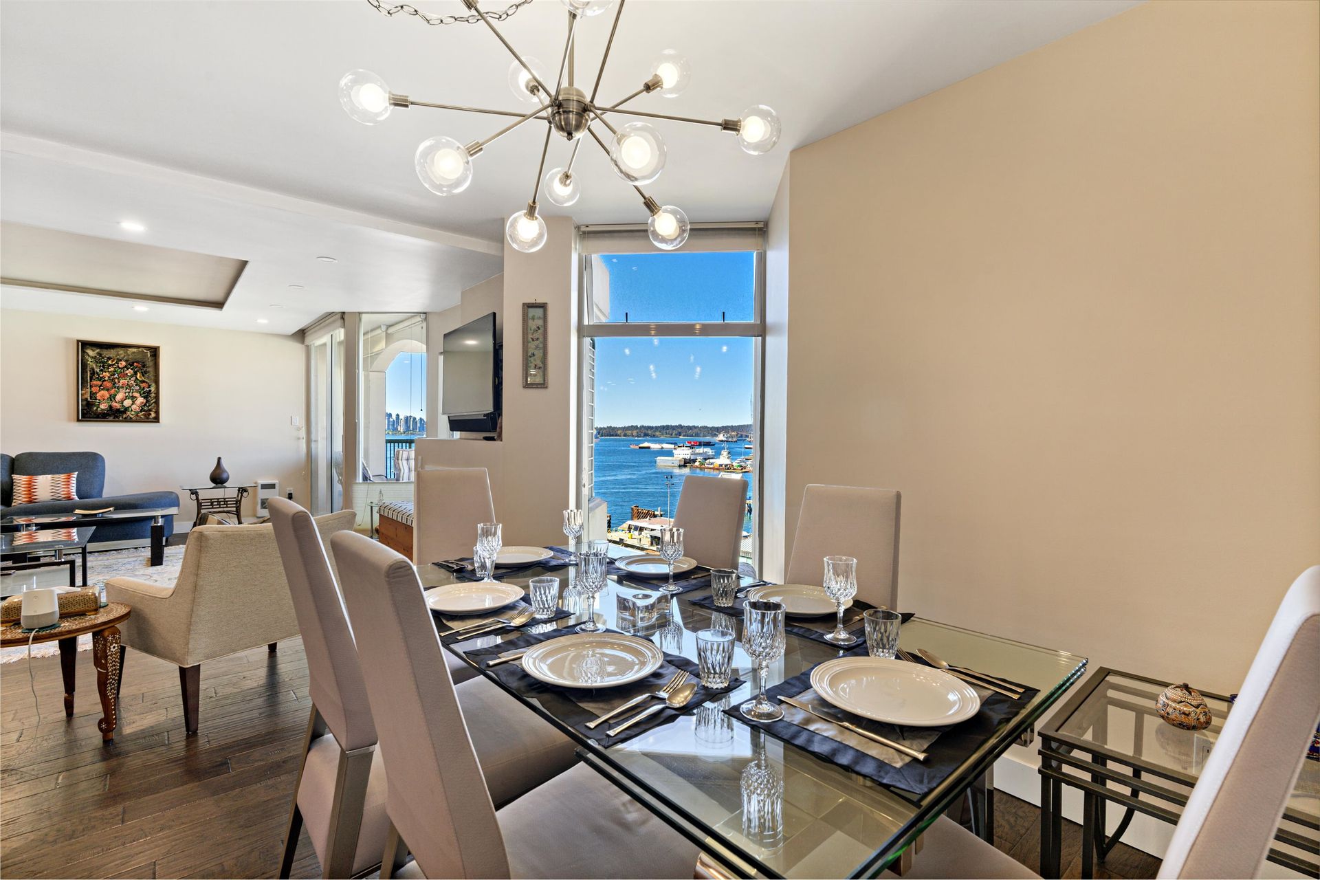 Spectacular WATERFRONT condo that features a full UNOBSTRUCTED South West PANORAMIC VIEW of the OCEAN & downtown Vancouver and North shore mountains. Split on two levels with 2 entrances boasts over 1800sqft Bosa built condo has 3 bedrooms upstairs. A large den which can easily convert into another bedroom or perfect work area. Truly open layout living room & elegant finishes of this condo. BEAUTIFULLY UPDATED the home features gorgeous hardwood floors & fully updated kitchen…. Plenty of storage here plus massive storage lockers & 2 parking spots. The location is truly unbeatable in the heart of Lower Lonsdale. Enjoy watching the SeaBus and cruise ships sail in & out of the harbour as you take in glorious sunsets. Condos this size don't come to market very often don let this one slip away