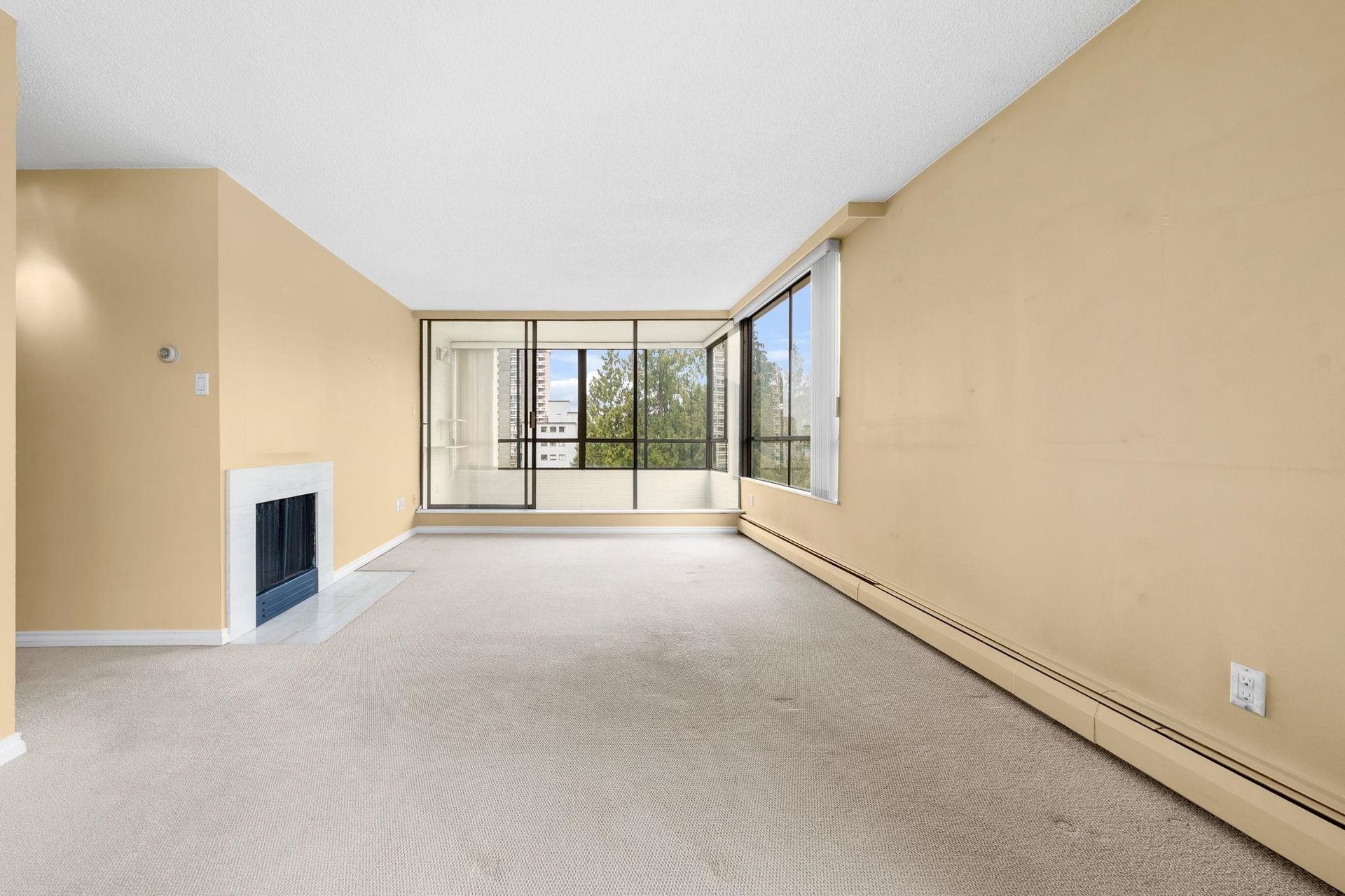 Bright northwest-facing 2-bedroom + solarium corner suite with stunning ocean and Mountain views. Large picture windows fill the home with natural light, while the open kitchen flows seamlessly into the dining and living areas, complete with a cozy wood-burning fireplace. The spacious primary bedroom offers a generous closet and cheater ensuite. Enjoy your morning coffee on the private balcony or take in the views from the solarium. In-suite laundry. Hemingway Place is a well-run concrete building with a proactive strata and new elevators (paid by seller). You are only a stone's throw away from excellent restaurants, every amenity possible and, of course, the famous seawall to enjoy your daily stroll and shops. Includes 1 parking and storage. Book your private showing today!